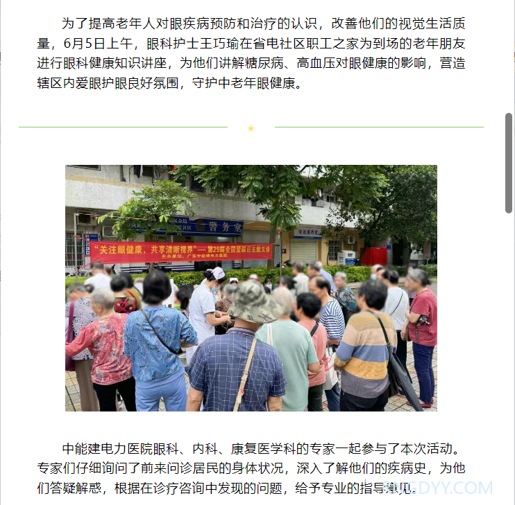 本院动态 联系电话:020-82078966 邮箱:rngd@crmedical.hk 【QQ咨询】: 全国爱眼日 | “关注眼健康,共享清晰视界” 电力医院到省电社区电力一局开展眼科知识讲座及义诊 时间:2024-06-06 编辑:皇冠8xmax官网 阅读:273 上一篇:双拥共建,融合发展 | 电力医院与广医五院携手共建诊疗医联体 下一篇:润心分享 | 区域联动护光明,医养协作暖人心 我要评论: 相关报道: 润心分享 | 区域联动护光明,医养协作暖人心 警示教育敲警钟,守纪护廉树清风|皇冠8xmax官网党支部组织参观广东省反腐倡廉教育基地 润心分享 | 断腕重生:医术铸就生命奇迹 谈判采购公告 | 皇冠8xmax官网 供应室二层板房改造监理服务项目采购公告 本院动态 | 以考促学强基础,以练促精保安全 ——皇冠8xmax官网圆满完成2025年第二季度“三基三严”考核工作 润心分享 | 一例糖尿病高渗性昏迷合并酮症酸中毒病例分享及科普 圆满收官 | 电力医院2025年三伏天灸义诊活动深受市民好评! 中国医师节 | “德馨于行,技精于勤”——向所有的医务工作者致敬! 地址:广州市黄埔区黄埔东路2957号志诚楼(门诊部) 黄埔东路3375号大院(住院部) 咨询:020-82078966 邮箱:rngd@crmedical.hk 传真:86(020) 82078027 患者服务小程序 官方订阅号 Copyright 2025 皇冠8xmax官网版权所有 粤ICP备20049783号 服务性质:非营利性网站 粤公网安备 号