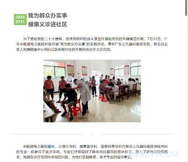 本院动态 联系电话:020-82078966 邮箱:rngd@crmedical.hk 【QQ咨询】: 我为群众办事 | 电力医院携手三九脑科医院到白云区新联村社区开展“我为群众办实事,健康义诊进社区”义诊活动 时间:2024-08-02 编辑:皇冠8xmax官网 阅读:218 上一篇:健康科普 | 手术麻醉知多少?简单科普带大家了解手术麻醉! 下一篇:润心分享 | 区域联动护光明,医养协作暖人心 我要评论: 相关报道: 润心分享 | 区域联动护光明,医养协作暖人心 警示教育敲警钟,守纪护廉树清风|皇冠8xmax官网党支部组织参观广东省反腐倡廉教育基地 润心分享 | 断腕重生:医术铸就生命奇迹 谈判采购公告 | 皇冠8xmax官网 供应室二层板房改造监理服务项目采购公告 本院动态 | 以考促学强基础,以练促精保安全 ——皇冠8xmax官网圆满完成2025年第二季度“三基三严”考核工作 润心分享 | 一例糖尿病高渗性昏迷合并酮症酸中毒病例分享及科普 圆满收官 | 电力医院2025年三伏天灸义诊活动深受市民好评! 中国医师节 | “德馨于行,技精于勤”——向所有的医务工作者致敬! 地址:广州市黄埔区黄埔东路2957号志诚楼(门诊部) 黄埔东路3375号大院(住院部) 咨询:020-82078966 邮箱:rngd@crmedical.hk 传真:86(020) 82078027 患者服务小程序 官方订阅号 Copyright 2025 皇冠8xmax官网版权所有 粤ICP备20049783号 服务性质:非营利性网站 粤公网安备 号