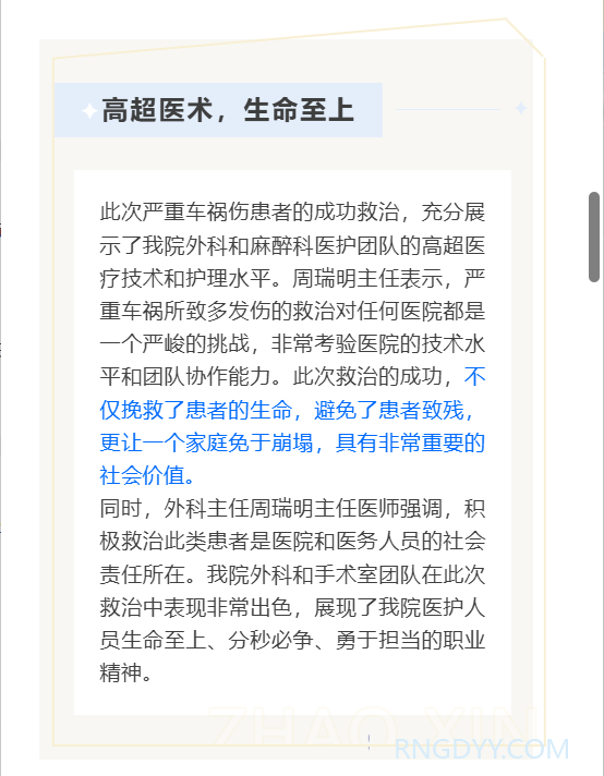 本院动态 联系电话:020-82078966 邮箱:rngd@crmedical.hk 【QQ咨询】: 润心分享 | 皇冠8xmax官网成功救治一例严重车祸伤致全身多处粉碎骨折合并脾破裂患者! 时间:2025-07-16 编辑:皇冠8xmax官网 阅读:227 上一篇:“静”益求精 | 皇冠8xmax官网成功举办2025年静疗科普视频大赛 下一篇:润心分享 | 区域联动护光明,医养协作暖人心 我要评论: 相关报道: 润心分享 | 区域联动护光明,医养协作暖人心 警示教育敲警钟,守纪护廉树清风|皇冠8xmax官网党支部组织参观广东省反腐倡廉教育基地 润心分享 | 断腕重生:医术铸就生命奇迹 谈判采购公告 | 皇冠8xmax官网 供应室二层板房改造监理服务项目采购公告 本院动态 | 以考促学强基础,以练促精保安全 ——皇冠8xmax官网圆满完成2025年第二季度“三基三严”考核工作 润心分享 | 一例糖尿病高渗性昏迷合并酮症酸中毒病例分享及科普 圆满收官 | 电力医院2025年三伏天灸义诊活动深受市民好评! 中国医师节 | “德馨于行,技精于勤”——向所有的医务工作者致敬! 地址:广州市黄埔区黄埔东路2957号志诚楼(门诊部) 黄埔东路3375号大院(住院部) 咨询:020-82078966 邮箱:rngd@crmedical.hk 传真:86(020) 82078027 患者服务小程序 官方订阅号 Copyright 2025 皇冠8xmax官网版权所有 粤ICP备20049783号 服务性质:非营利性网站 粤公网安备 号