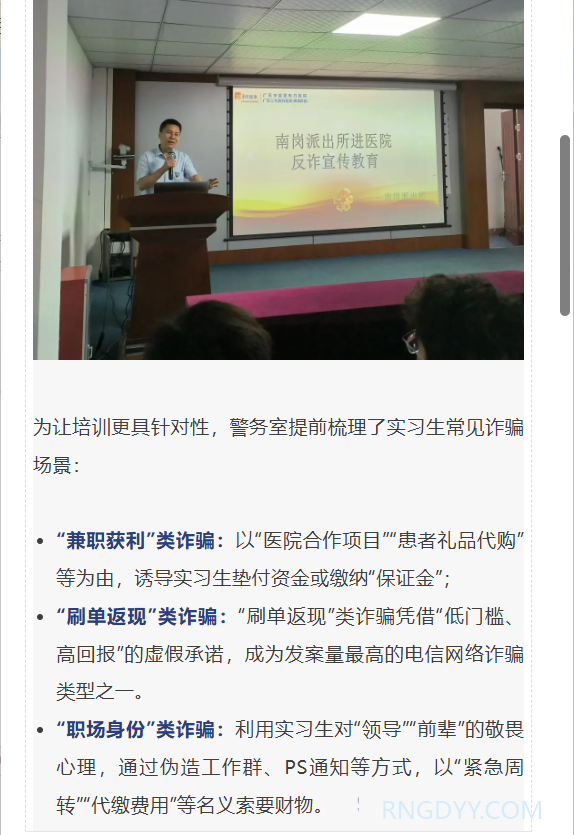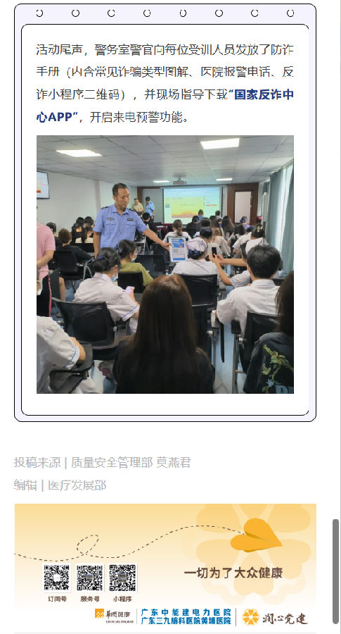 本院动态 联系电话:020-82078966 邮箱:rngd@crmedical.hk 【QQ咨询】: 本院动态 | 警医联动守“新苗” 防诈课堂护“成长”——皇冠8xmax官网开展实习生防诈骗专题培训 时间:2025-08-12 编辑:皇冠8xmax官网 阅读:77 上一篇:影述峥嵘岁月,赓续红色初心┃皇冠8xmax官网党支部组织观看爱国影片《南京照相馆》 下一篇:润心分享 | 区域联动护光明,医养协作暖人心 我要评论: 相关报道: 润心分享 | 区域联动护光明,医养协作暖人心 警示教育敲警钟,守纪护廉树清风|皇冠8xmax官网党支部组织参观广东省反腐倡廉教育基地 润心分享 | 断腕重生:医术铸就生命奇迹 谈判采购公告 | 皇冠8xmax官网 供应室二层板房改造监理服务项目采购公告 本院动态 | 以考促学强基础,以练促精保安全 ——皇冠8xmax官网圆满完成2025年第二季度“三基三严”考核工作 润心分享 | 一例糖尿病高渗性昏迷合并酮症酸中毒病例分享及科普 圆满收官 | 电力医院2025年三伏天灸义诊活动深受市民好评! 中国医师节 | “德馨于行,技精于勤”——向所有的医务工作者致敬! 地址:广州市黄埔区黄埔东路2957号志诚楼(门诊部) 黄埔东路3375号大院(住院部) 咨询:020-82078966 邮箱:rngd@crmedical.hk 传真:86(020) 82078027 患者服务小程序 官方订阅号 Copyright 2025 皇冠8xmax官网版权所有 粤ICP备20049783号 服务性质:非营利性网站 粤公网安备 号